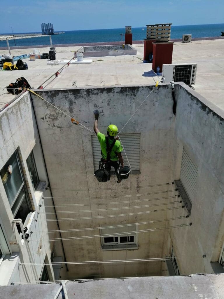 - Medidas de seguridad: durante la ejecución de las obras, se deben seguir estrictas medidas de seguridad para proteger a los trabajadores y a los residentes. Esto incluye el uso de procedimientos de trabajo seguros (como son los trabajos verticales), equipos de protección personal y la señalización adecuada de las áreas de trabajo.